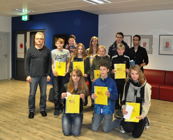 In einem kleinen feierlichen Rahmen erhielten 16 Schülerinnen und Schüler der Jahrgangsstufen 6 – 10 der Schule am Schloss am Freitag dem 11.12. ein Zertifikat, das ihnen die erfolgreiche Teilnahme an der ersten Integrationspatenschulung bescheinigte. Die Integrationspatenschulung, welche in Kooperation… Weiterlesen →