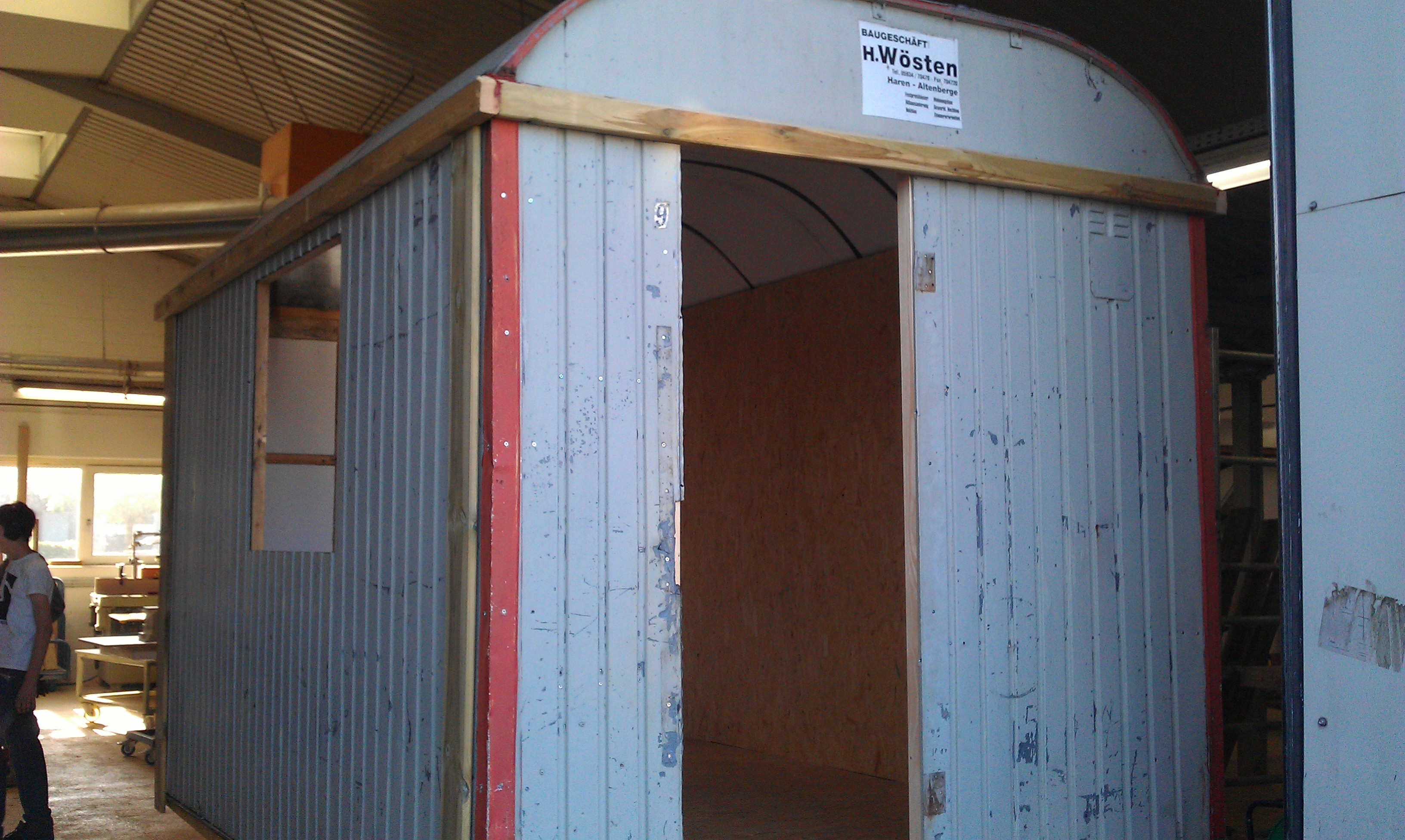 Schon lange spielte man an der Schule am Schloss mit dem Gedanken, sich einen ausrangierten Bauwagen zu beschaffen, ihn zu restaurieren und als Spieleausleihe im Rahmen der „Aktiven Pause“ auf dem Schulhof einzusetzen. Sebastian Straeck-Bühler, Sozialpädagoge an der Schule am Schloss, forschte nach, um ein entsprechendes Fahrzeug zu finden – und er wurde fündig! Das Bauunternehmen Wösten in Haren hatte einen ausgedienten Bauwagen und übergab diesen der Schule kostenlos. Nach dem Transport in die Werkstätten von A + W konnten sich die Schülerinnen und Schüler an die Arbeit machen. Der nahezu schrottreife Bauwagen wurde entkernt, das Chassis gereinigt, entrostet, entgratet und mit einem neuen Anstrich versehen. Der Aufbau aus Blech ist von außen komplett mit Holz verstärkt worden und der Innenraum gleicht jetzt durch die ansprechende Holzvertäfelung und einem großen Regal einem kleinen Wohnzimmer. „Das Ergebnis ist einfach beeindruckend, wenn man sich den Bauwagen von innen und außen anschaut, absolut kein Vergleich zum ursprünglichen Zustand“, so AWT-Fachkonferenzleiter Uwe Hoormann, der das Projekt begleitete. Und auch Berufsberaterin Angelika Fondalinski-Lakeberg zeigte sich begeistert: „Dieses Projekt ist Berufsorientierung pur! Die Schülerinnen und Schüler konnten sich in den Bereichen Metall, Holz und Farbe erproben und ihre Talente entdecken.“ Das Gefährt hat mittlerweile seinen Platz auf dem Schulhof der Schule am Schloss gefunden und dient dort, wie vorgesehen, als Spieleausleihe. Es beherbergt Pedalos, Stelzen, Federballspiele, Ringwurfspiele, Bälle und viele weitere attraktive Spielgeräte, die die Schülerinnen und Schüler in den großen Pausen ausleihen können. Durch diese aktive Pausengestaltung werde auch ein wichtiger Beitrag zur Förderung der Gesundheitserziehung geleistet, so Schulleiterin Maria Lau.