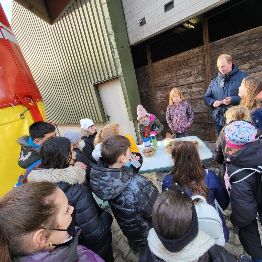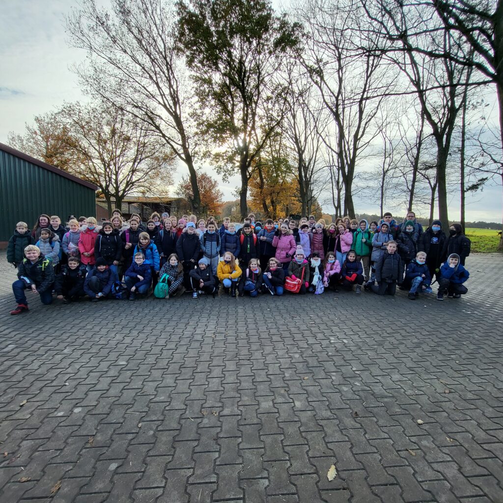 Um etwas über die Haltung von Nutztieren und Berufe in der Landwirtschaft zu erfahren, besuchten die 5ten Klassen im Rahmen des Biologieunterrichtes einen landwirtschaftlichen Betrieb in Stavern. An 4 Stationen erhielten die Schülerinnen und Schüler einen Einblick in eine artgerechte Tierhaltung sowie eine realitätsnahe Arbeitswelt. Dank der freundlichen und informativen Betreuung sowie des Tierkontakts bleiben die Erfahrungen nachhaltig in Erinnerung.