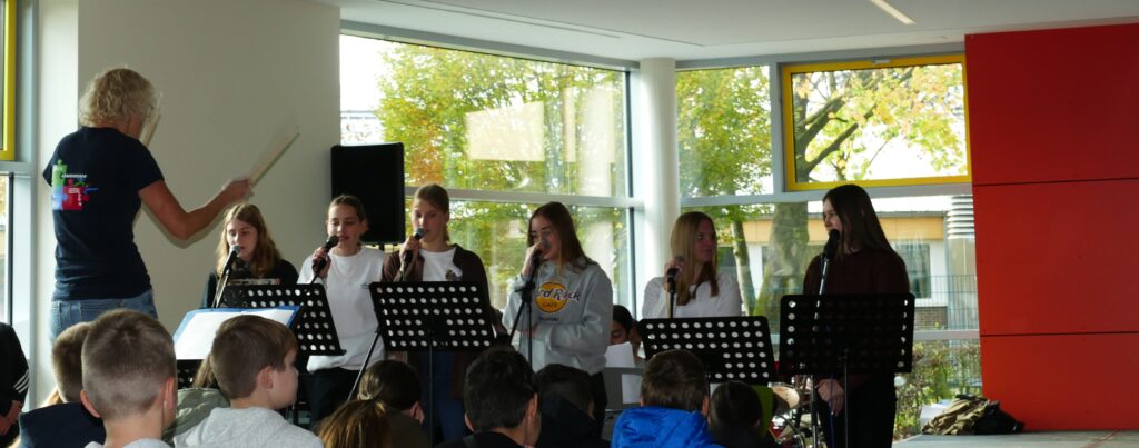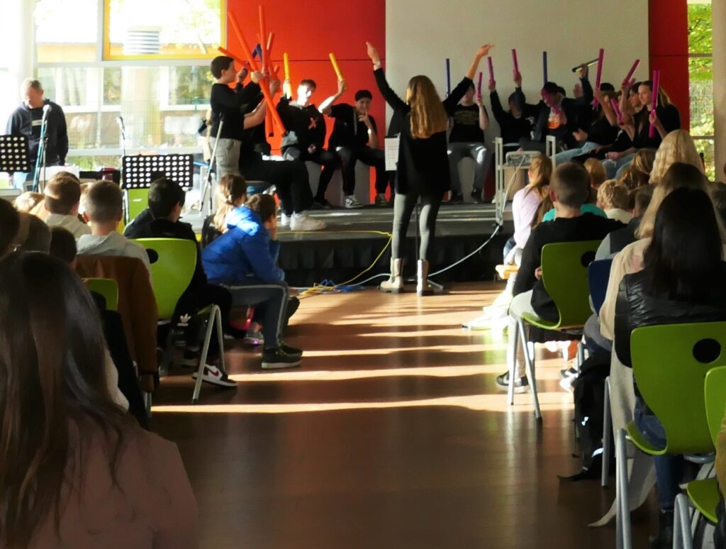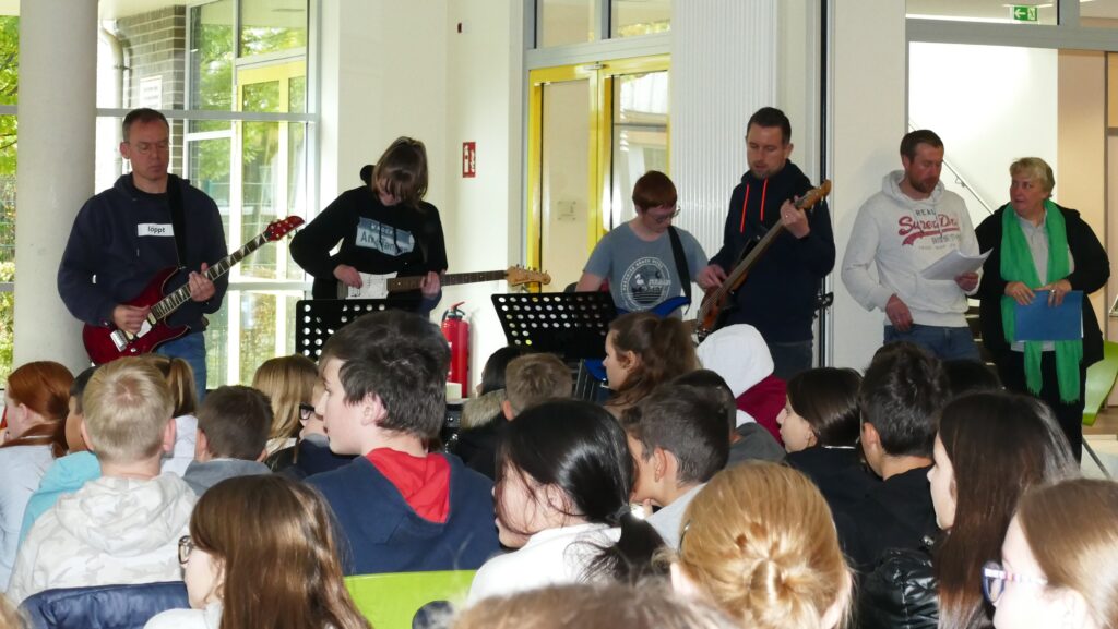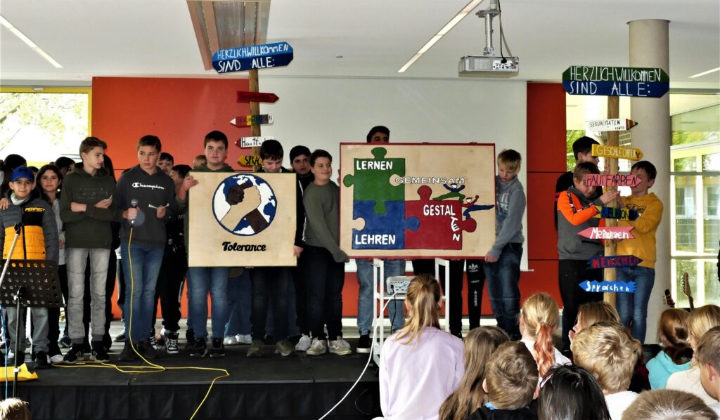 Ein weiteres Schülerteam hatte es sich zur Aufgabe gemacht, alle Projekte zu dokumentieren und zu digitalisieren. Interessante Instrumentalstücke und von SchülerInnen selbst geschriebene und vorgetragene Rock- und Rapper- Songs zu Toleranz und Vielfalt rundeten das mehrstündige Programm ab.