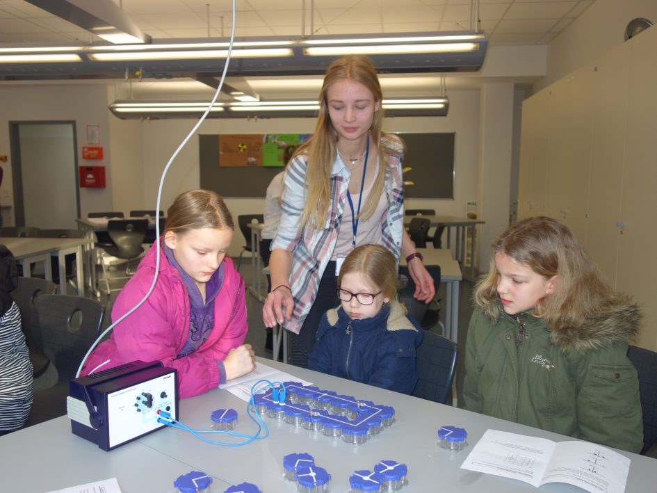 Ca. 140 Viertklässler aus den Grundschulen der Samtgemeinde Sögel waren mit ihren Eltern und Klassenlehrern zum Kennenlernen, Schnuppern, Mitmachen und Informieren in die Oberschule Sögel  gekommen. Nachdem das Schulleiterteam mit Maria Lau, Marion Geers und Andreas Bouras die Eltern durch das Schulgebäude geführt hatte, informierte  Schulleiterin Maria Lau die zahlreich erschienenen  Eltern über die Struktur der Oberschule mit ihren vielfältigen Bildungsangeboten und Schulprojekten. Sie sagte:“  „Wir sind stolz auf unsere Auszeichnungen: Schule ohne Rassismus, Sportfreundliche Schule, Startklar für den Beruf und Europaschule“.   Schülerlotsen der Klassen 10 begleiteten die Grundschüler beim Rundgang durch das komplette Schulgebäude und über das  Schulgelände bis in die anliegende Mensa und die Räumlichkeiten der Ganztagsbetreuung. Auch die moderne Bibliothek wurde besichtigt.  Bevor es in den Schnupperunterricht ging, konnte noch die Robotertechnik und der moderne Computerraum  bestaunt werden. Schulsozialarbeiter Sebastian-Straeck-Bühler stellte zudem die Schulsozialarbeit und zuständigen Sozialarbeiter vor; Französischlehrerin Reinhild Gallus gab derweil Einblicke in den Französischunterricht,  und Schüler und Schülerinnen erklärten die Schülerfirma mit ihren Verkaufsräumlichkeiten.    Mit Eifer und großem Interesse experimentierten die Grundschüler unter Anleitung der Fachlehrer und SchülerInnen des 10. Jahrganges in den neuen Fächern Physik und Chemie.   Der erst kürzlich in Betrieb genommene Soccerplatz bot für die fußballbegeisterten Grundschüler zudem die Gelegenheit für ein Schnupper-Spielchen.  SchülerInnen vom Profilfach Gesundheit & Soziales hatten unter der Leitung von Mechthild Ahaus-Borchers und Thea Timpker wieder  für Kaffee und selbstgebackene  Kuchen gesorgt.  Unter der Leitung von Jürgen Jansen begeisterte  die Schulband die kleinen und großen Gäste  mit modernen Popsongs und zum Schluss der Veranstaltung noch   mit  dem Mitmachsong  „Zwei kleine Wölfe“. Schulleiterin Lau bedankte sich bei allen Besuchern für das Interesse am Schulleben an der Schule am Schloss und sagte: „Ich hoffe, dass wir  mit dieser  Aktion bei der Entscheidung, ob unsere Schule die richtige Wahl für die weitere Schullaufbahn des Kindes ist, ein wenig beitragen konnten“.