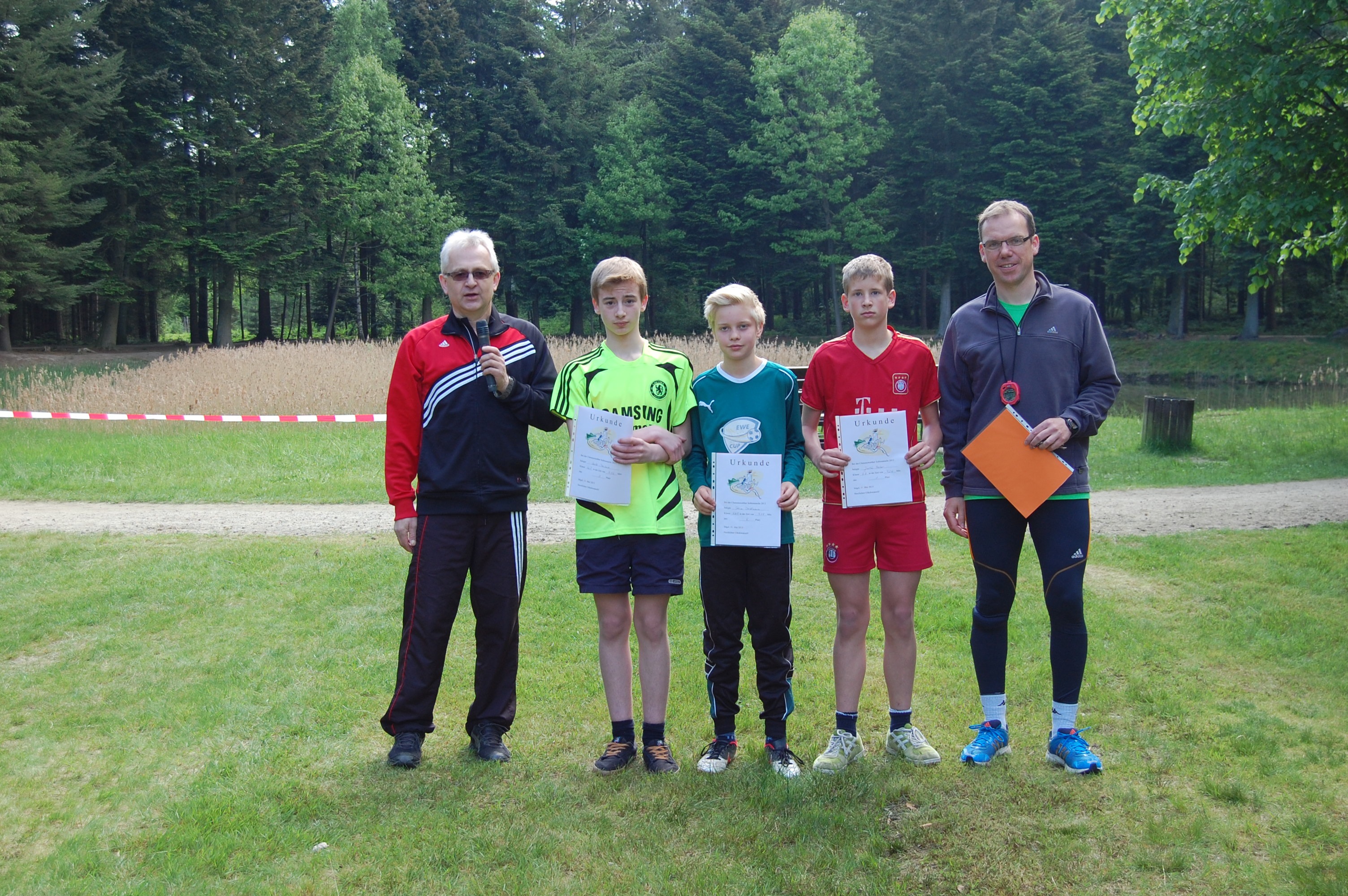 Als schnellster Läufer wurde Malte Krüssel aus der 9aR seiner Favoritenrolle gerecht. Mit einer hervorragenden Zeit von 6:05 Minuten erlief er sich unangefochten die Schulmeisterschaft. In einer nicht weniger beachtlichen Zeit von 7:45 Minuten sicherte sich seine Schwester Nele bei dem Mädchen des Jahrgangs 7 den 3. Platz. Die sportlichen Erfolge der Familie Krüssel wurden an diesem Tag nur noch von der Familie Asselborn getoppt. Alle drei Geschwister schafften es in ihren Jahrgängen auf das Treppchen! Andreas aus der 5aR erreichte mit einer Zeit von 7:40 Minuten den 2. Platz, ebenso sein Bruder Dennis im Jahrgang 7 mit einer Zeit von 6:42 Minuten. Die Krönung dieses Familienerfolges erzielte allerdings die große Schwester Angelika, die mit einer Zeit von 8:07 Minuten bei dem Mädchen des 9. Jahrganges als erste durchs Ziel lief.