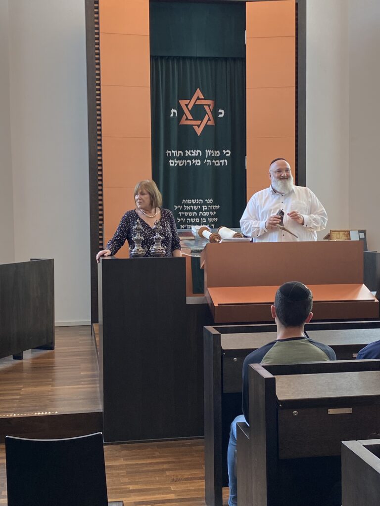 In der Synagoge fand eine erneute Begrüßung auf Hebräisch mit Erläuterungen statt. Die Thora Rollen wurden gezeigt