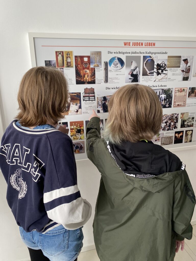 Die Schüler haben erfahren, dass es immer mehrere Rollen gibt, damit man nicht so lange rollen muss, um an die gewünschten Stellen zu gelangen. Besonders interessant ist, dass eine Thorarolle aus der alten Sögeler Synagoge stammt, welche aus der Reichsprogromnacht gerettet werden konnte. Der Kantor hat auch noch Zeit gefunden, interaktiv gemeinsam mit allen 3 Lieder zu singen (auch auf Hebräisch).