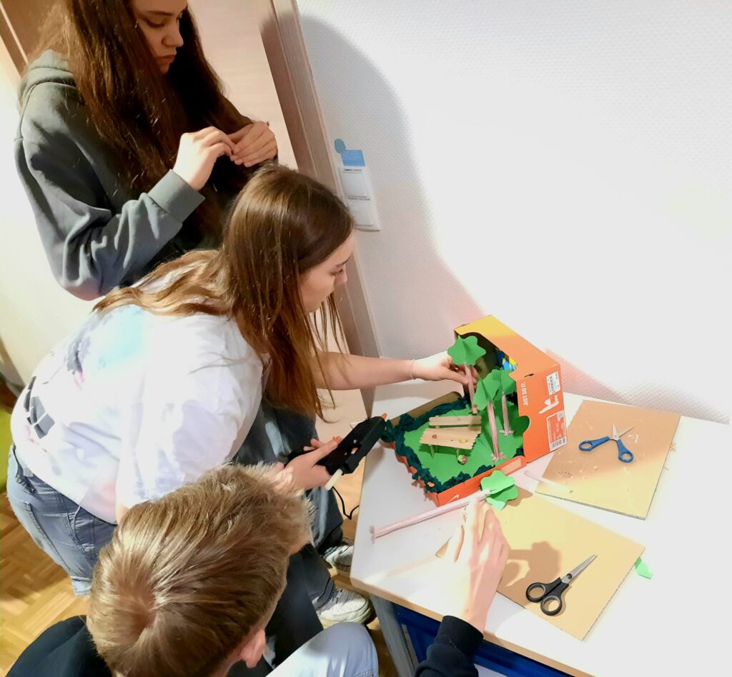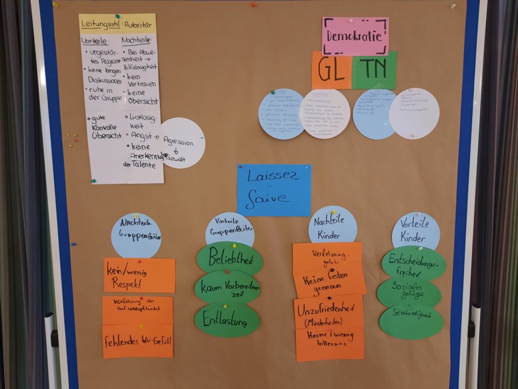 Unter anderem wurden Murmelbahnen mit begrenzten Materialien in gemischten Gruppen gebaut, um die Rollenverteilung und die verschiedenen Gruppenphasen zu verdeutlichen. Außerdem wurden die Leitungsstile (autoritär, demokratisch und laissez faire) präsentiert, Glaubensorte gebastelt und ein Wortgottesdienst gefeiert.