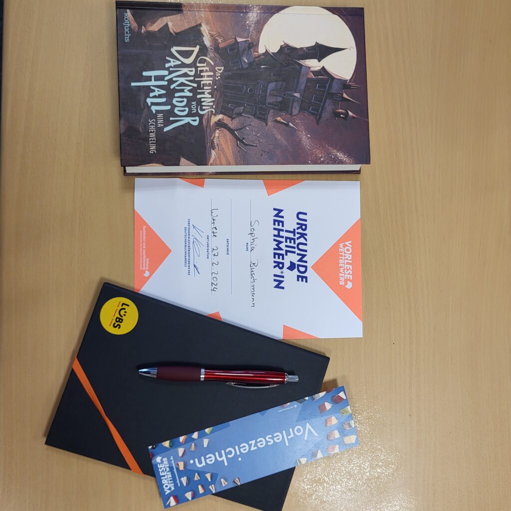 Am 27. Februar 2024 fand am Schulzentrum Werlte der Vorlesewettbewerb (Kreisentscheid) statt. Unsere Schule wurde erfolgreich vertreten durch Sophia Buschmann (Klasse 6a), die Anfang Dezember 2023 zur Schulsiegerin gekürt wurde. Alle sieben TeilnehmerInnen lasen einen selbstgewählten und einen fremden Text und erhielten als Anerkennung eine Urkunde, ein Notizheft mit Kugelschreiber sowie ein Buch.