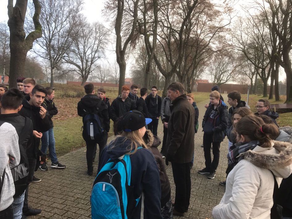 Im Rahmen des Geschichtsunterrichts besuchten die Klassen 9aR und 9bR der Oberschule Sögel mit ihren Geschichtslehrern Andreas Terborg und Markus Schute die Gedenkstätte in Esterwegen. Zum Einstieg in das Thema „Emslandlager“ vermittelte Herr Ausländer den SchülerInnen durch einen mediengestützten Vortrag, was in diesem größten der insgesamt 15 Emslandlagern während der NS-Schreckensherrschaft von 1933-1945 geschehen ist. Danach wurden die SchülerInnen selbst aktiv und informierten sich ausgiebig mithilfe von vorgefertigten Fragebögen, u.a. auch über das Lagerleben und das Leben der Häftlinge im Lager Esterwegen. Herr Ausländer führte die nachdenklich gestimmten Schüler ebenfalls noch auf das große Außengelände, so dass sie zudem einen Einblick in den Aufbau des Lagers bekamen.
