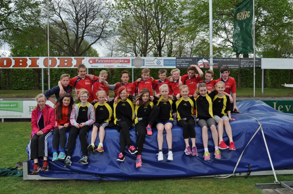 Zwei Mannschaften, bestehend aus jeweils zehn Mädchen und Jungen, haben vor kurzem frei nach dem Motto „schneller, weiter, höher“ am Kreisgruppenentscheid für Schulen der Landkreise Emsland und Grafschaft Bentheim in Lingen teilgenommen. Dabei ging es darum in den Disziplinen 50m Sprint, Weit- und Hochsprung, Ballwurf, 800m sowie in der 4x50m Staffel möglichste viele Punkte zu erreichen, um dann in der Mannschaftswertung weit vorne zu liegen. Insgesamt nahmen an diesem Wettbewerb über 30 Mannschaften mit weit über 300 Schülern teil. Der Schule am Schloss gelangen dabei gute Platzierungen (Jungen 3./Mädchen 6.), wobei zwei Disziplinsiege durch Theresa Sanders im Hoch- und Weitsprung bei starker Konkurrenz zu verzeichnen waren.