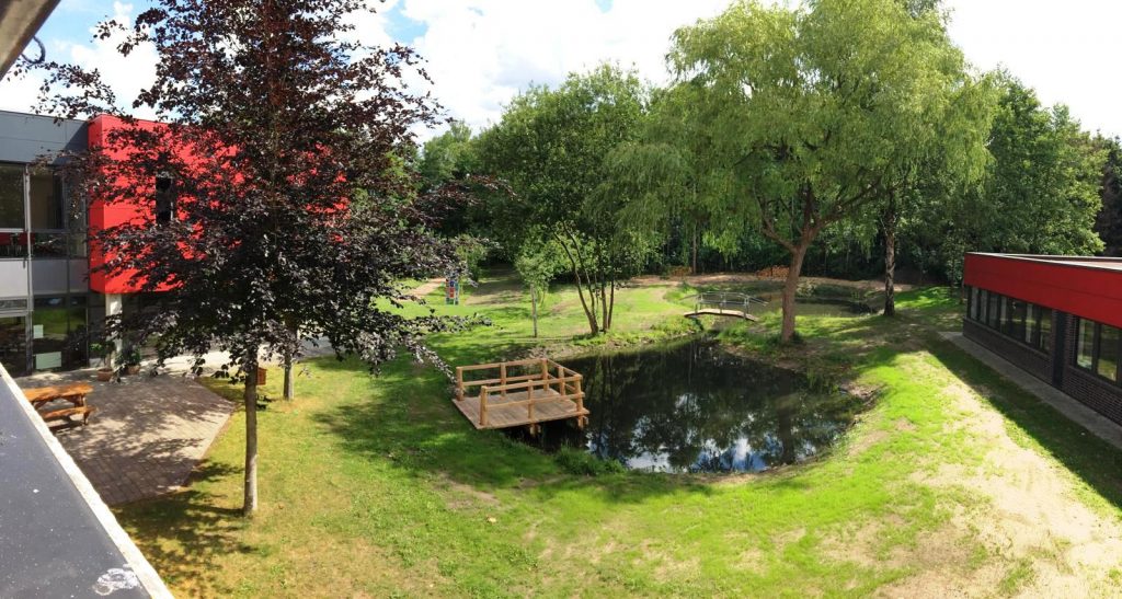 Die Oberschule Sögel beteiligte sich auch bei der diesjährigen 72-Stunden-Aktion des Bundes der Deutschen Katholischen Jugend (BDKJ) mit einem eigenen Projekt. Unter dem Motto „Uns schickt der Himmel“ hatten sich 12 SchülerInnendes 9. Jahrgangs, die gleichzeitig Teilnehmer des Gruppenleitergrundkurses von Lehrer Michael Blankmann sind, bereit erklärt, bei dieser Aktion mitzuwirken. Ebenso waren etwa 15 LehrerInnen mit im Einsatz.Unter der Gesamtleitung von Lehrer Markus Schute wurden dann binnen 72 Stunden folgende Aufgabeumgesetzt:Die Renaturierung des vorhandenen Schulteiches und das Anlegen einer Wildblumenwiese. „Im Schulgarten der Schule am Schloss existiert seit etwa 40 Jahren ein Schulteich, der völlig verlandet, zwischenzeitlich ausgetrocknet und nur noch schematisch vorhanden und von daher ungenutzt ist“, sagte Schute. Durch die Renaturierung soll der Teich seinen Worten nach wieder als echtes Biotop genutzt und verstärkt in das Curriculum Biologie eingebunden werden. „Mit der Wildblumenwiese schaffen wir einen Lebensraum für die Insekten, und mittelfristig kann auch über die Ansiedlung von Bienenvölkernim Schulgarten nachgedacht werden“, erklärte Schute weiter.