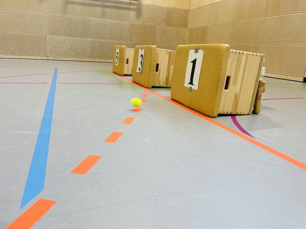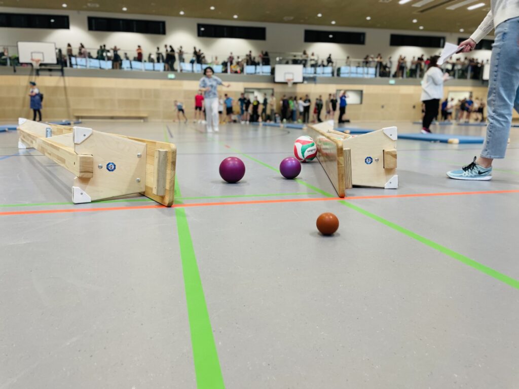 Traditionell traten heute die Klassen 5 – 7 der Oberschule Sögel in der Großraumturnhalle gegeneinander an. Mit hoher Geschwindigkeit und Präzision versuchten die bunt verkleideten SchülerInnen Punkt um Punkt zu sammeln. Auf 5 verschiedenen Bahnen wurden Kegel, Bälle, Kästen und Pylonen getroffen.